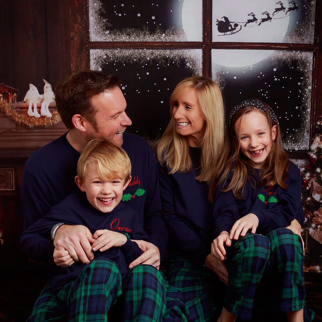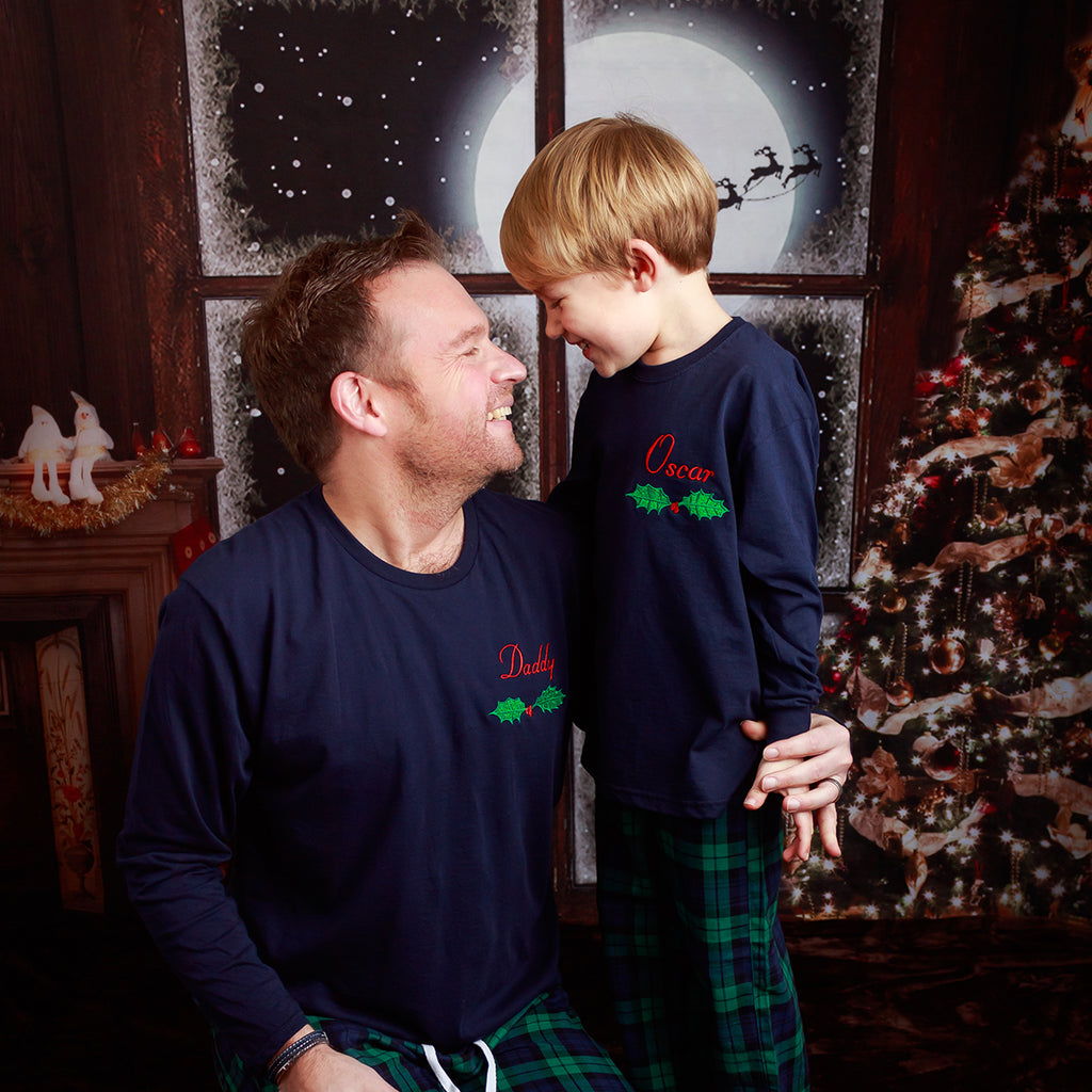 With perfectly festive Christmas Holy embroidery with your name above, these tartan pyjamas are sure to be a new family favourite.