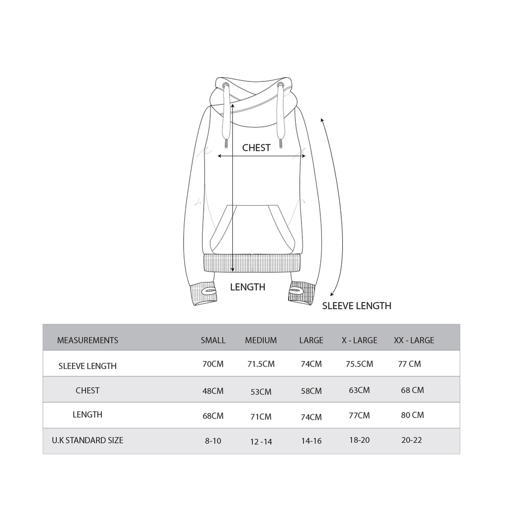 A really lovely hoody, had many positive comments about the heart design and the cowl neck already. It arrived quickly and was packaged lovely, a real treat. Fit of the hoody was spot on (medium), warm and cosy!