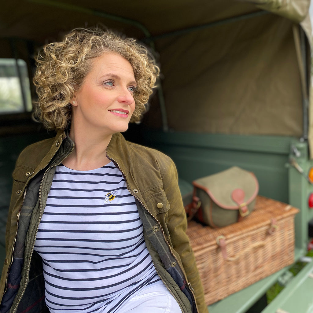 Our slim fit, wide neck, breton stripe jersey top features our luxury 'Bee' design. This classic breton top is finished with twin needle hem and cuff trim and a self fabric neck tape.