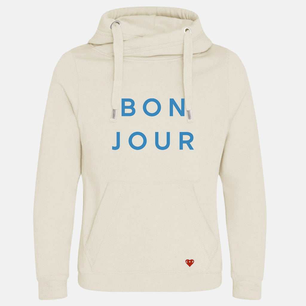 Our easy fit, Heavy weight hooded sweatshirt features our 'Bon Jour' print and front pouch pocket with colby heart embroidery. This hoody is beautifully finished with quality 1 x 1 ribbed cuff & hem trims and engineered side panel. This hoodie also features a handy thumb hole for extra cosiness.